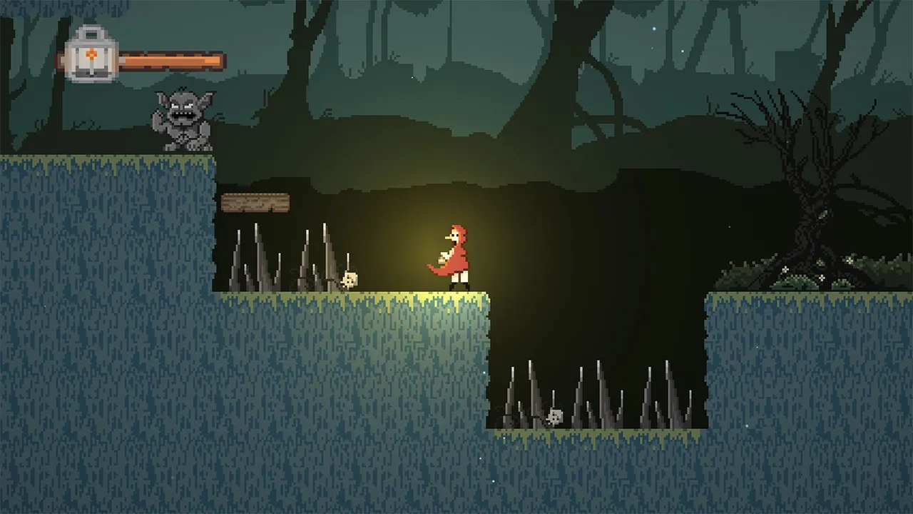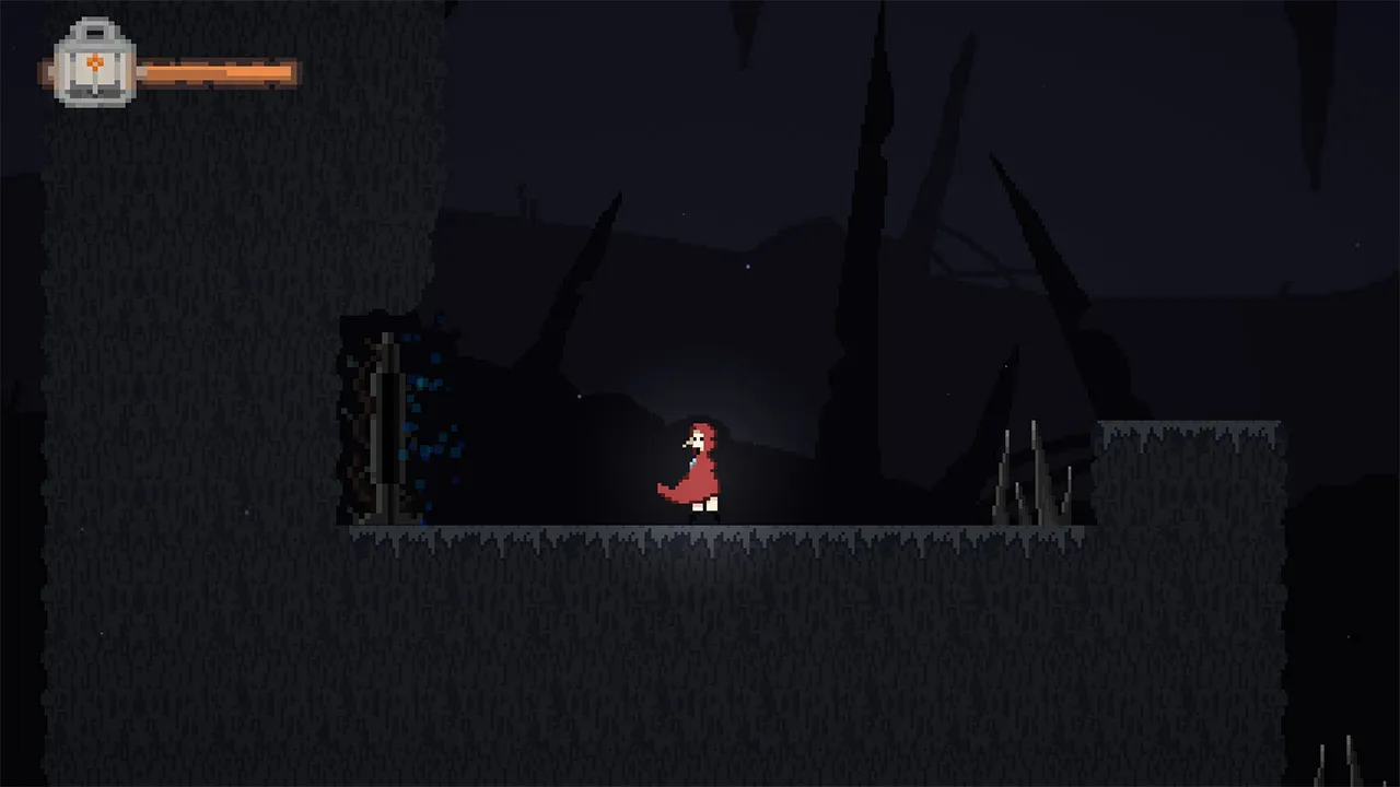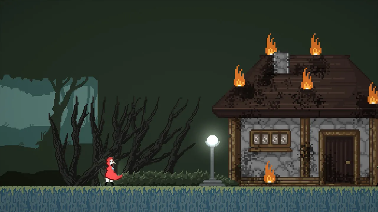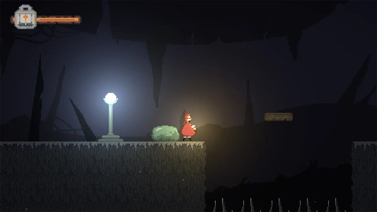 An alternative version of the famous story of Red Riding Hood. A 2D action platform game, where the goal is to go through the forest and reach grandma's house. The main mechanic of the game is to use an oil lamp (light) to see anything that is not normally visible.
